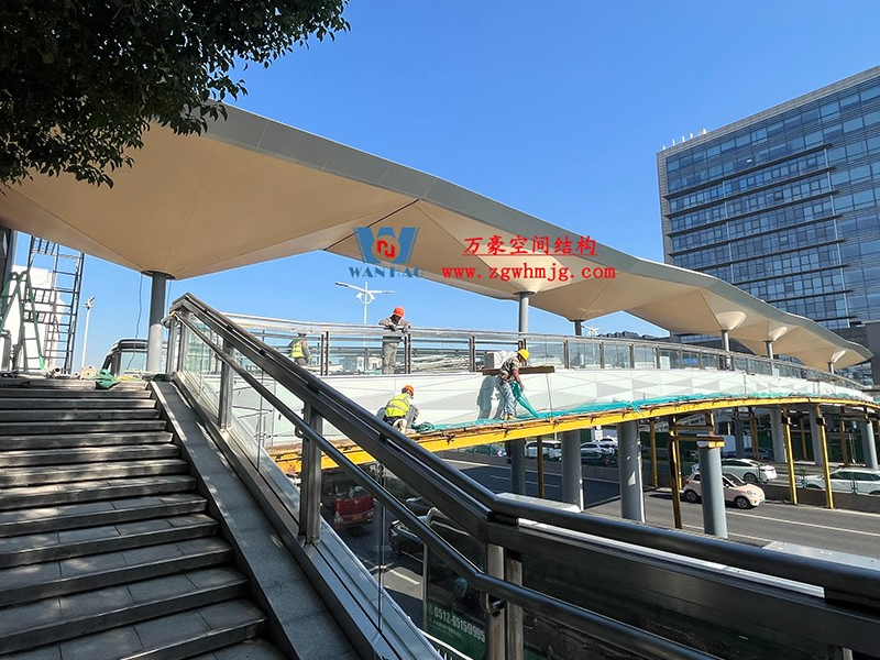 蘇州東環(huán)路人行天橋ptfe膜結(jié)構(gòu)改造工程位于江蘇省蘇州市蘇州工業(yè)園內(nèi),該項(xiàng)目PTFE膜結(jié)構(gòu)展開面積2000平米。
