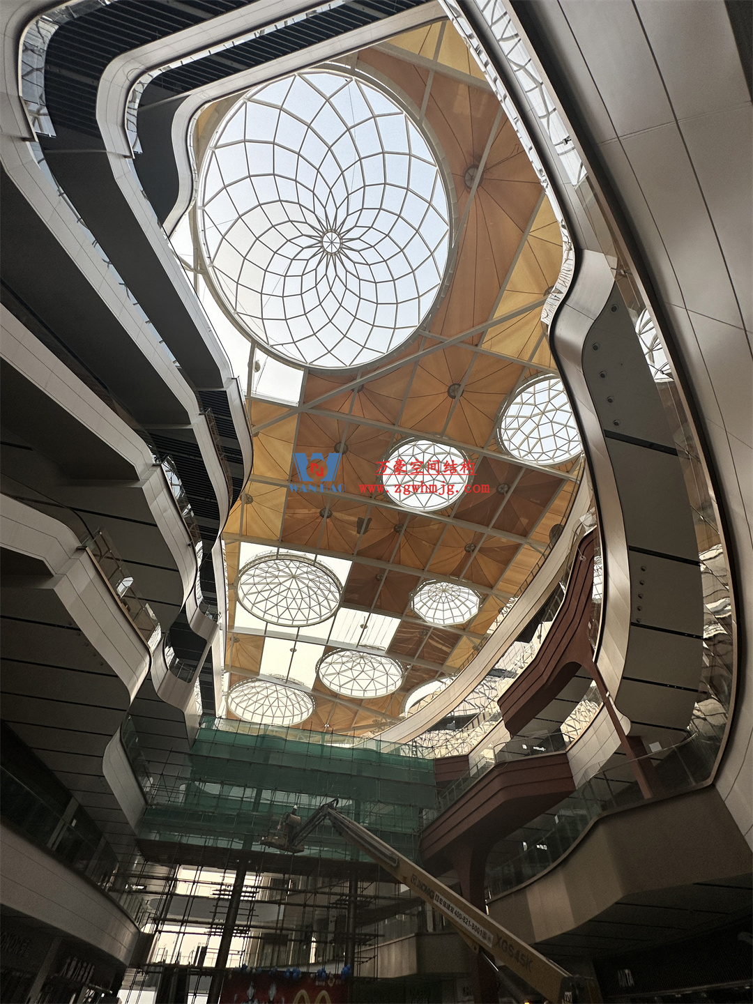 3、適應(yīng)大跨度:膜結(jié)構(gòu)材質(zhì)輕,適合大跨度的建筑設(shè)計(jì)。在大型商業(yè)街區(qū)中,常常需要建造開闊的空間,膜結(jié)構(gòu)穹頂能夠輕松滿足這一需求,無需過多的支撐結(jié)構(gòu),使空間更加開闊、通透。
