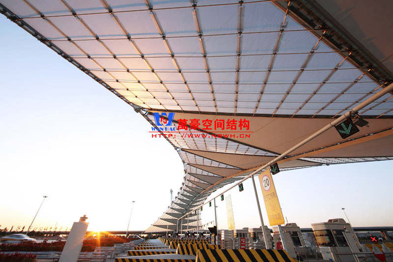 東常蘆荻山收費站膜結構效果圖,該結構跨度大,造型別致,十分吸引人,有興趣做這種類型收費站膜結構的可以聯系我們哦。