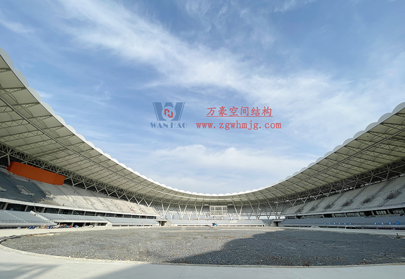 項目共有256跨懸挑,其中最大懸挑32m,最小懸挑4m。中間由向上托拱聯接而成,后面與鋁板交接,是常規類大型體育場館。